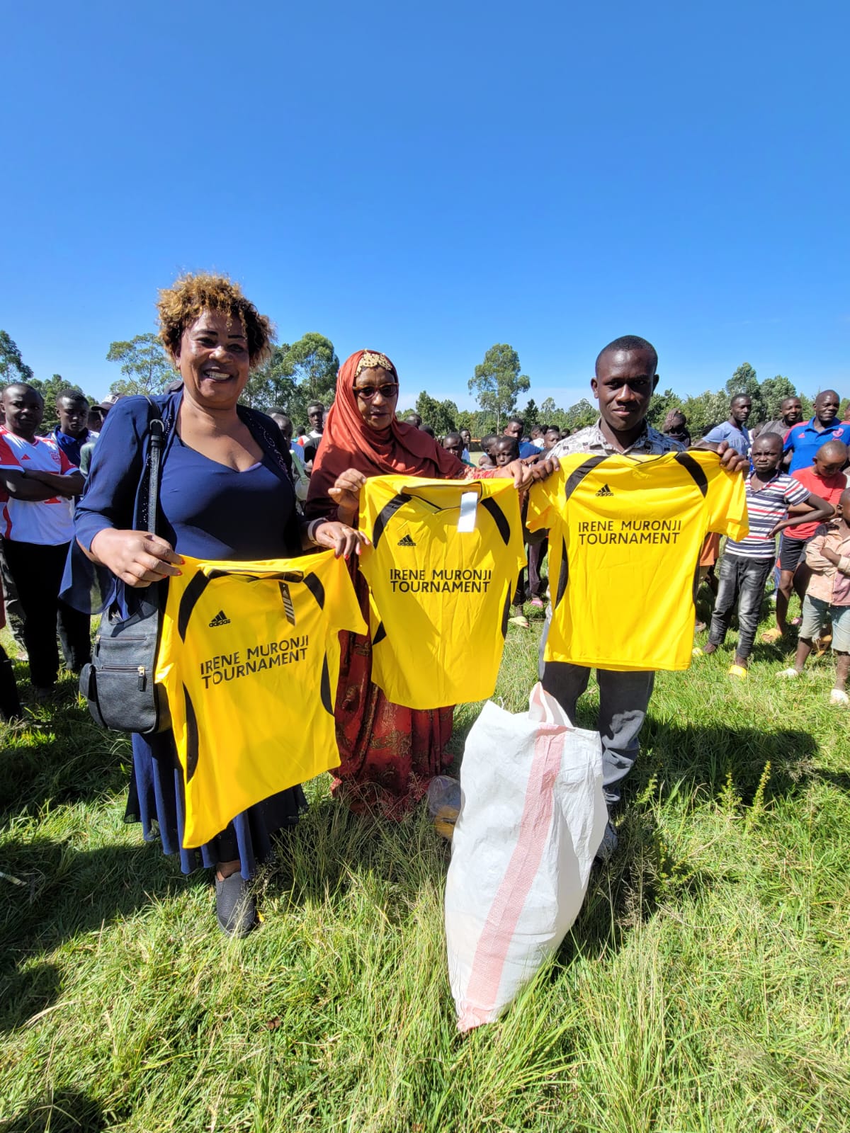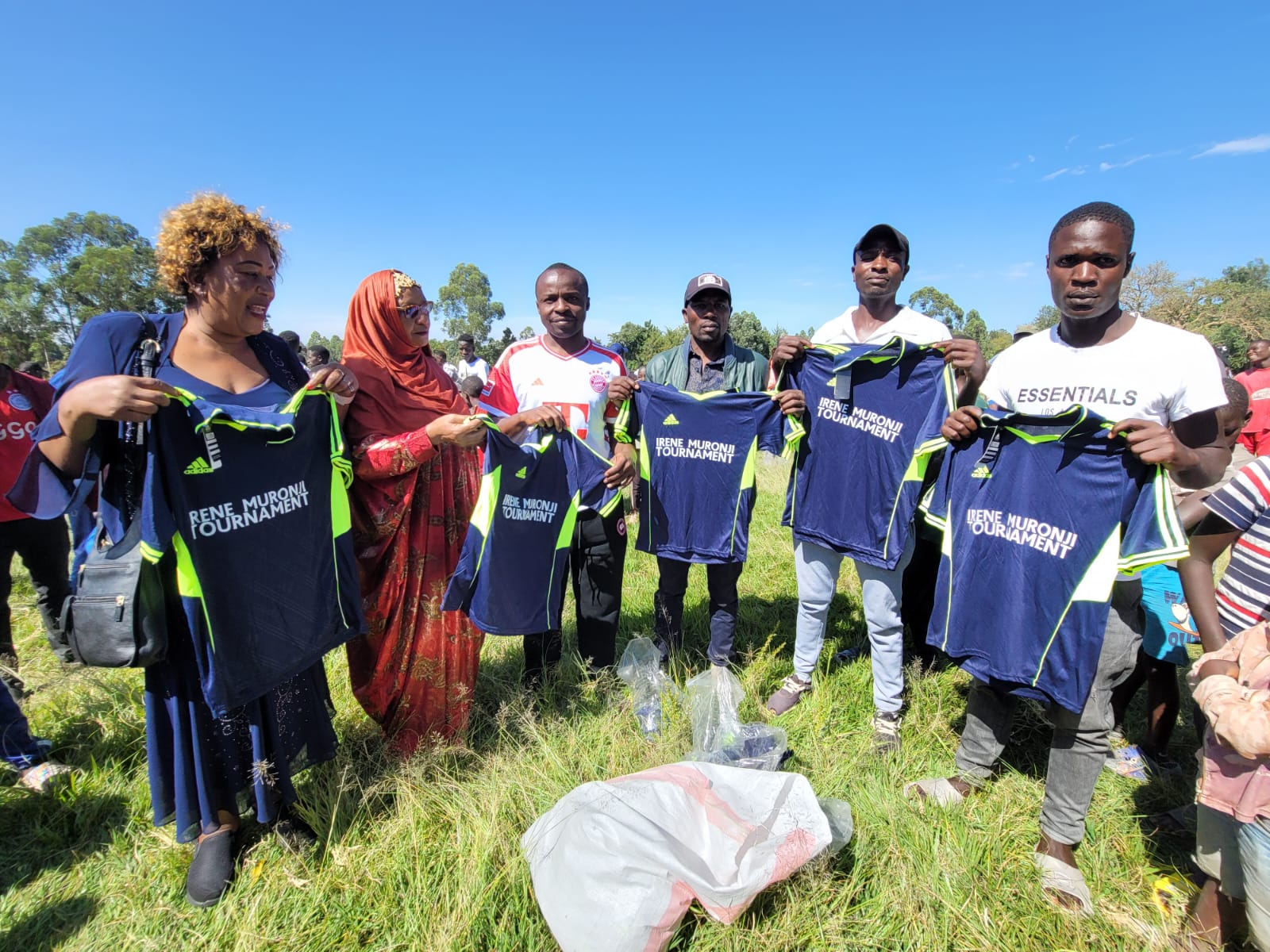 Irene Muronji, the Sponsor of Irene Muronji Foundation Football Tournment issues kits to participating teams